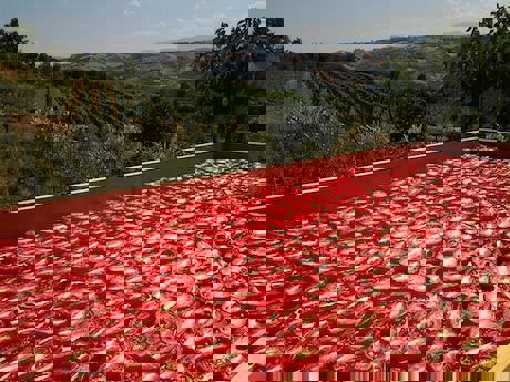 "De tomaten die wij verwerken worden geteeld op ongeveer 40 hectare, die slechts gedeeltelijk door ons worden beheerd. De opbrengst per hectare is laag en we telen de tomaten op een natuurlijke manier. De hectare waarop wordt geteeld bevinden zich in verschillende gebieden en daarom krijgen we geen biologische certificering", legt Giovanni Palumbo uit.
