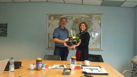 Karin kreeg een bloemetje als dan voor haar inzet nu zij haar loopbaan een andere wending gaat geven.