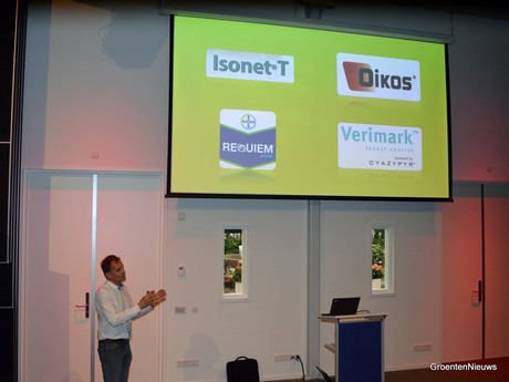 Het plenaire gedeelte werd afgetrapt door Luc Kurris. Hij wees de telers op het toenemende belang van biopesticiden naast biologische bestrijders nu er steeds meer chemische bestrijdingsmiddelen wegvallen. Omdat het middelenpakket steeds verder ingeperkt wordt, duurde het niet lang voordat er vanuit de zaal door telers vragen werden gesteld over toelatingen van middelen in andere gewassen dan die nu op het etiket staan.