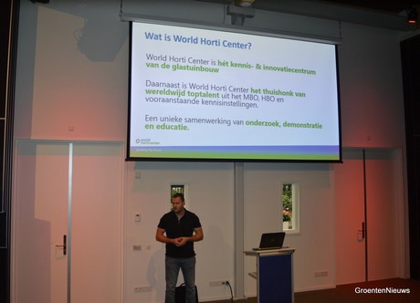 Na Luc kreeg Jeroen Sanders van de Demokwekerij Westland het woord. De jaarlijkse traditie volgend gaf hij een update over de actualiteiten en een update over de proeven. Proeven waarbij het volgens Jeroen elk jaar weer een uitdaging is om ze goed toonbaar te laten zijn tijdens de rondgangen. Proeven ook die zowel in het World Horti Center als in de ‘oude’ Demokwekerij uitgevoerd kunnen worden. Belangrijk volgens Jeroen, want hierdoor zijn er in het Westland twee proeflocaties beschikbaar.