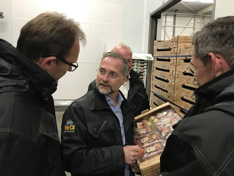 Vervolgens werd er een bezoek gebracht aan VerDi Import. Mark Verweij (algemeen directeur) sprak tijdens het werkbezoek over de import van groenten en fruit en noemde vooral de toename van het aantal Europese handelsbarrières een probleem. "Nederland is een absolute wereldspeler op het vlak van groenten en fruit, maar wordt ook geconfronteerd met steeds meer fytosanitaire maatregelen en andere handelsbarrières. Handelsstromen worden steeds lastiger en uiteraard zijn er regels noodzakelijk voor een veilige handel, maar fytosanitaire maatregelen dienen de voedselveiligheid en mogen geen politiek instrument zijn", zei hij.