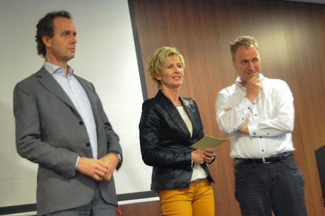 FloraHolland directeur Timo Huges, dagvoorzitter Monique Ooms en STAP-voorzitter Jan Zegwaard.