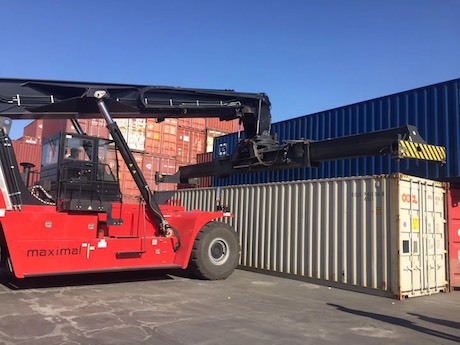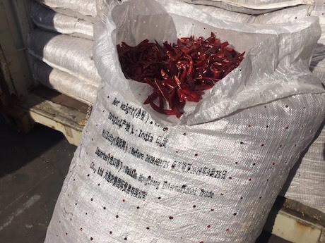 De aankomst van Indiase rode pepers in de haven