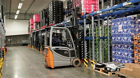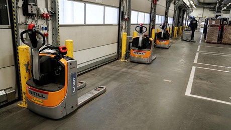 De meerijdende pallettrucks worden ingezet voor de langere rijafstanden. De vaste zijwanden bieden de bestuurder hierbij meer veiligheid en comfort.
