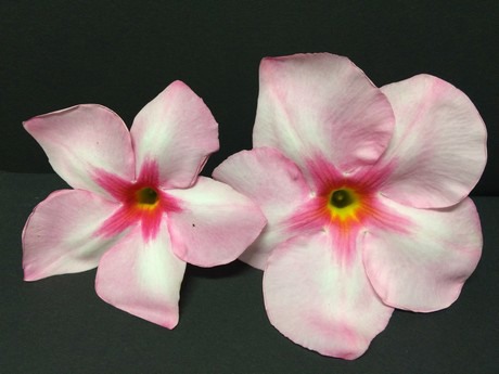 Een voorbeeld van chromosoomverdubbeling. Links de originele diploïde, rechts de verdubbelde tetraploïde variant met grotere bloem.