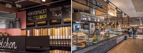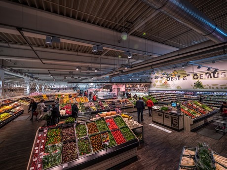 In de eerste maanden na de opening lag de focus op het assortiment, dat bestaat uit bio-producten en regionale verse producten. Een totaal van 198 leveranciers uit de omgeving brengen hun producten naar 14 winkels. In het oog valt de verticale uitstalling van producten in glazen vitrines op de AGF-afdeling. Enkele van de kruiden en groenten worden hier ter plekke geteeld. Dit is mogelijk door een partnerschap met de start-up InFarm uit Berlijn.