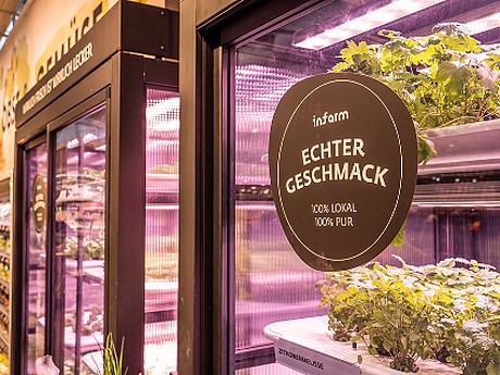 Het vlaggenschip van de AGF-afdeling is de verticale InFarm teelt van kruiden en groenten / Foto: HIEBER