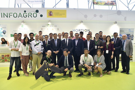 De autoriteiten poseren samen met oprichters van start-ups in op de afdeling Smart Infoagro