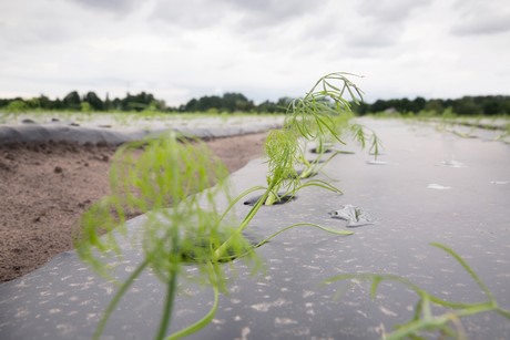 Jan werkt nu zo'n drie jaar bij een deel van zijn teelten met biofolie op basis van zetmeel. Dankzij de folie spoelt er minder stikstof uit de bodem en is minder bemesting nodig. De ervaringen met de folie zijn wisselend, geeft hij aan. "In het voorjaar houden we dankzij de folie iets meer warmte in de grond. Daardoor groeien de gewassen iets sneller. Wij zijn de folie gaan gebruiken vanwege het vele onkruid op onze zandgronden, maar daarbij moet ik constateren dat er nog relatief veel onkruid groeit. Hierdoor hebben we naar mijn zin nog te veel werk aan het onkruid. Met bladgewassen is er geen probleem, die groeien snel genoeg. Maar in de bleekselderij, venkel en prei heeft de folie niet het gewenste resultaat gebracht."