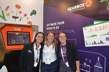 Marleen Abels, Winny van Heijningen van LetsGrow.com dat hun stand deelde met Simone Keijzer van Gearbox Innovation Makers. Door data (LetsGrow.com) en beeld (Gearbox) bijeen te brengen, willen beide bedrijven samen telers meer datagedreven laten telen.