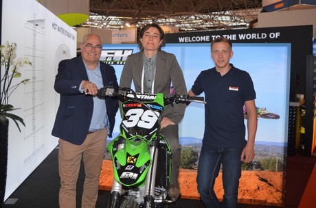 Rob van Leeuwen en Remko de Vries (F&H Crone) flankeerden Hilde Kleerekoper (Zantingh) op de door de hun meegebrachte motor.