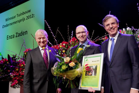 Op dinsdag 10 januari heeft Jaap Mazereeuw, Algemeen Directeur van Enza Zaden, de Tuinbouw Ondernemersprijs 2012 in ontvangst genomen. De feestelijke prijsuitreiking vond plaats tijdens de nieuwjaarsbijeenkomst van Productschap Tuinbouw in de Keukenhof in Lisse. ‘De prijs is een prachtige waardering en de kroon op het werk van alle medewerkers van Enza Zaden. We zijn zeer vereerd met het ontvangen van de prijs. Het is voor ons bedrijf een stimulans om met veel energie verder te werken aan waardecreatie door innovatie,’ aldus Jaap Mazereeuw.