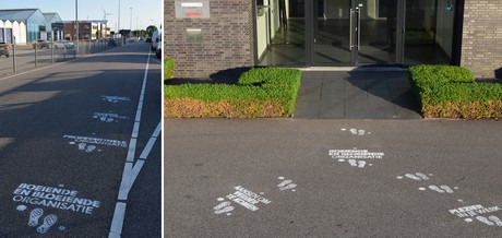 De opvallende straatgraffiti is niet blijvend. Teksten en voetstappen zijn met 100% organisch en volkomen milieuvriendelijk krijt aangebracht. De uitingen zullen na verloop van tijd langzaam wegvagen door regen en verkeer.