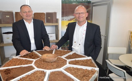 Midden jaren ’80 startte Jos van der Gaag van Van der Gaag Potgrond B.V. met de verkoop van kokos als potgrond. Dat resulteerde in Shakti Cocos, een bedrijf dat aan de basis stond van de ontwikkelingen van onbewerkte kokos naar een veelzijdig substraat. Jack: “Door de jaren heen is er veel kennis in het product gestopt. Doordat we de kokos chemisch de juiste behandeling geven en fysisch stabiel maken, het in een schone omgeving produceren en in de meest optimale verhoudingen mengen, maken we het geschikt als substraat. Voor elk gewas is er de juiste samenstelling. Zo is er binnen het bedrijf een manier ontwikkeld om de pH in kokos te kunnen beïnvloeden. Een substraat met een lagere pH waarde is onder andere geschikt voor de teelt van diverse soorten zachtfruit.”