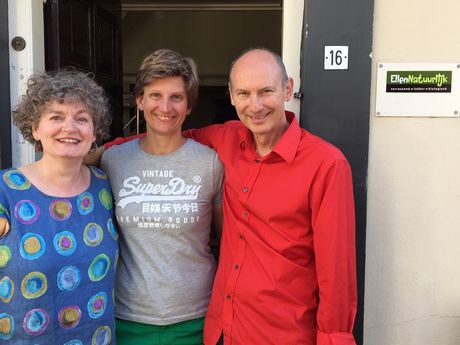 Ellen Appeldoorn, Ellen Vunderink en Michel Backus bij het afscheid en de kennismaking op 29 juni.