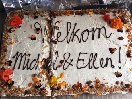 "Deze prachtige taart liet Ellen voor ons maken door de Veldkeuken uit Amelisweerd, zo lief!"