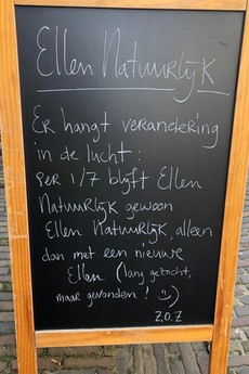 De 'nieuwe' Ellen hoorde begin dit jaar dat de eigenaresse van Ellen Natuurlijk op zoek was naar een opvolger. "Daar heb ik niet lang over na moeten denken. Ik liep jaren geleden namelijk al rond met het idee om in Wijk en Duurstede een zaak te starten met een klein assortiment bio-voeding en horeca erbij. Dat was mijn grote wens, maar draaide op niks uit. Tijdens een bezoekje aan Wijk bij Duurstede met een vriendin liepen we al de natuurvoedingswinkel met mijn naam er op tegen het lijf. Daarom besloot ik mijn kans te wagen toen ik vernam dat Ellen Vulderink een opvolger zocht."