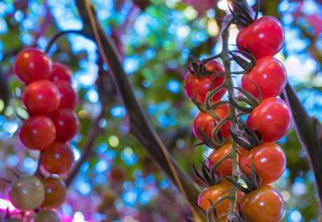 Voor het tweede seizoen op rij werkt het Trial Center Tomato met hybride belichting. Het voordeel van deze combinatie van SON-T boven het gewas en LED-belichting er tussen (ter hoogte van de vierde tros) is de mogelijkheid om iets rustiger te telen, met behoud van kwaliteit. Van Meurs: “De LED-lampen brengen het licht diep in het gewas. Daardoor volstaan drie in plaats van de gebruikelijke vier Son-T armaturen en blijf de temperatuur van de koppen wat lager.”
