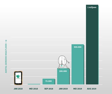 Sinds 22 januari 2018 gaat Too Good To Go effectief de strijd aan tegen voedselverspilling in Nederland. De app heeft inmiddels een community van meer dan 800.000 geregistreerde app-gebruikers die bij ruim 2.000 aangesloten locaties door heel Nederland terechtkunnen voor eten wat tegen sluitingstijd over dreigt te blijven. Vandaag is de 1 miljoenste maaltijd gered. Dat zijn 1 miljoen maaltijden die op een bord zijn beland in plaats van in de vuilnisbak. Winst voor het milieu, ondernemers en consumenten.