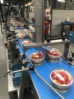 Den Berk Délice gebruikt de machine voor 500-grams en 250-grams verpakkingen. De emmers zijn zowel van plastic als van karton. Met die laatstgenoemde verpakking bespaart de Belgische tomatenteler bijna 85% plastic. De kartonnen emmers krijgen wel een plastic deksel, want het product moet wel zichtbaar zijn voor de consument.