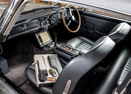Het is model is één van de drie overgebleven Aston Martin DB5's die door het productiebedrijf van de James Bond films werden besteld. De auto is voorzien van alle snufjes en gadget die Q in de auto heeft geïnstalleerd, zoals roterende kentekenplaten en compartimenten waaruit olie en spijkers op de weg geworpen kunnen worden.