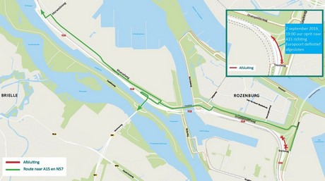 Vanaf maandag 2 september 19 uur wordt de oprit naar de A15 richting Europoort vanaf de Trentweg bij Rozenburg definitief afgesloten. De andere op- en afritten blijven gewoon open.