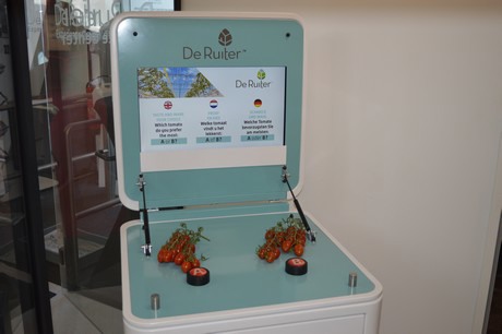 De Ruiter Experience Box. “Hier is het mogelijk makkelijk en ongedwongen informatie te verzamelen van consumenten in bijvoorbeeld de supermarkt”, aldus Nico. “Door een vraag op het scherm te presenteren en twee producten of twee verpakkingen neer te leggen, kunnen mensen met één druk op de knop hun keuze laten weten. Dat levert waardevolle informatie op en dus lenen supermarkten deze tool ook van ons.”