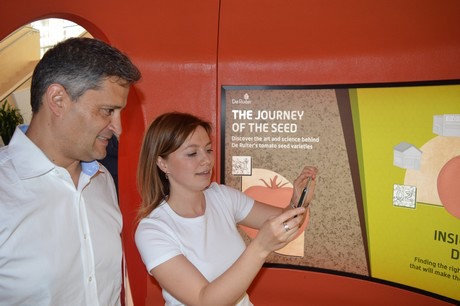 Het scannen van een QR-code in de tomaat neemt de bezoeker mee in een reis langs het hele proces dat voorafgaat aan het uiteindelijke opkweken van een tomatenplant. “Een verhaal, waarvan zelfs telers nog lang niet altijd goed op de hoogte zijn”, aldus Franky. “Zij bestellen uiteindelijk een jonge tomatenplant en weten niet precies wat daaraan voorafgegaan is. Dat laatste willen we juist wel laten zien. Transparantie is steeds belangrijker, ook met het oog op de stijgende plaag- en virusdruk.”