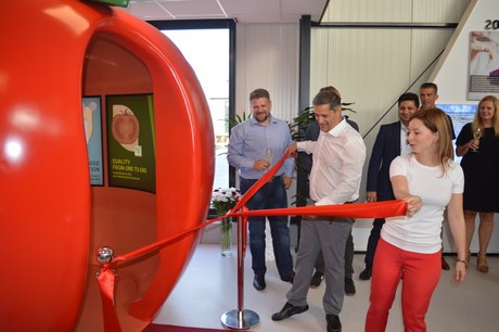 Tholen – Vraag het een teler en hij zal zeggen dat elke dag in zijn kas weer anders is en dat het dus nooit ‘saai’ is. Dat zal het ook in het De Ruiter Experience Center, de ontmoetingsplaats die het veredelingsbedrijf inmiddels 1,5 jaar geleden opende, niet worden. Daar zorgen ze in Bleiswijk namelijk wel voor met het continu toevoegen van nieuwe tools. De nieuwste? Een tomaat waar je binnen kunt stappen om het verhaal van zaad mee te maken. Gisteren werd deze eyecatcher onthuld.