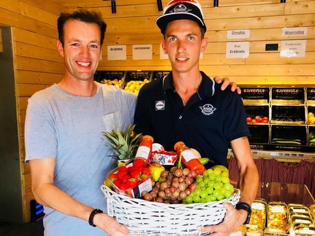 Tholen - De combinatie van wielerfan en fruitexpert blijkt een goede. Wim Van Den Heuvel aarzelde geen moment toen hij profwielrenner Nick Embrechts op de parkeerplaats voor zijn winkel Wim groenten en fruit spotte. "Ik herkende hem aan het petje van Deceuninck - Quick step en sprak hem aan. We hebben vervolgens een half uur gesproken. Gisteren contacteerde hij ons om langs te komen voor een fruitmand en fruitsmoothies", vertelt Wim enthousiast.