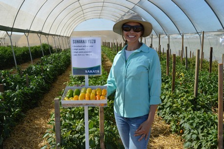 “Een zak met mini-paprika's in verschillende kleuren ziet er uitnodigend uit maar betekent wel dat al die verschillende kleuren tegelijk geoogst moeten kunnen worden," vertelt Ana Saballos, paprikateler voor Sakata Seed in Florida. "We hebben drie genotypes hybriden ontwikkeld, in rood, oranje en geel, die allemaal op hetzelfde moment geplukt kunnen worden. Deze nieuwe lijn snackpaprika's wordt verkocht onder het overkoepelende merk 'Sunakku' wat Japans is voor 'snack'. De mini-paprika's zijn er in drie kleuren: Sunakku Ichigo (rood), Sunakku Yuzu (geel) en Sunakku Mikan (oranje).