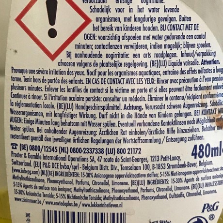 Terug naar de foto. Dit is het etiket van Dreft, het afwasmiddel. Niet verstandig om die fles leeg te drinken, maar je kunt gerust uit een glas drinken wat je net hebt afgewassen. Dat geldt ook voor gewasbeschermingsmiddelen. Geen aanrader om een fles leeg te drinken, maar onze paprika’s kun je gewoon eten, ook als we hulp uit een flesje hebben gehad.