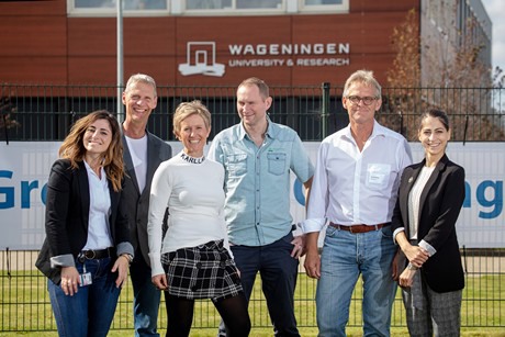 Het team van de WUR dat de challenge organiseert, met Silke Hemming als derde van links