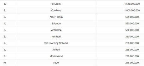 Met een Nederlandse online omzet van 1,64 miljard euro is bol.com de vertrouwde lijstaanvoerder in de nieuwe Twinkle100. Coolblue bezet de tweede plaats, daarachter volgt Albert Heijn als de nieuwe nummer 3.