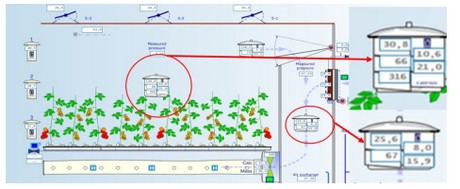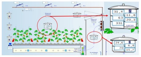 In een semi-gesloten kas kunnen telers het verschil in absolute luchtvochtigheid meten tussen de lucht die de kas in komt en die de kas verlaat. Als ze ervan uitgaan dat de verdamping van de planten verantwoordelijk is voor het verschil, kunnen ze berekenen hoeveel verdamping er bij de plant plaatsvindt.