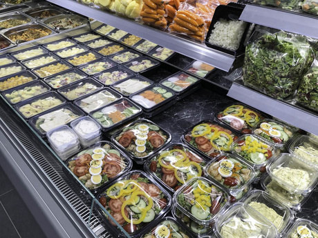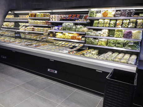 "Als je de winkel betreedt, springt direct het Carthago multifunctionele wandkoelmeubel eruit. Marco heeft gekozen voor een deel "Presto" uitvoering voor de voorverpakte producten en een deel "Legato" uitvoering, voorzien van schuifruiten en geschikt voor de presentatie van losse bewerkte producten in GN bakken.