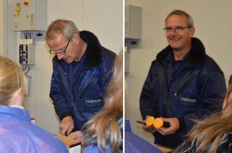 Henk Lubbers laat wat kaki's proeven.