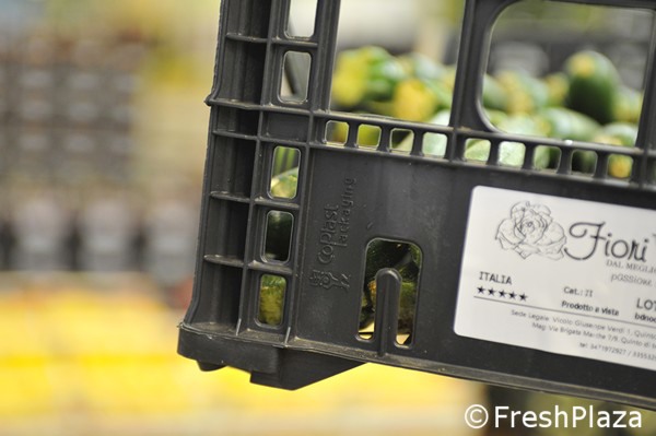 "We betalen voor gebruikte kratten die vervolgens worden gebruikt om nieuwe van te maken. Ze zijn gecertificeerd en geschikt voor contact met voedsel", legt Mariano Magarotto van Plastic Packaging uit.