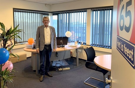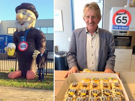 Bij Alweco siert een enorme Abraham de voortuin. Ter gelegenheid van Leo Alsemgeest's 65e verjaardag wordt er taart aangerukt, zo laat het bedrijf via LinkedIn zien.