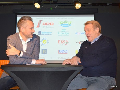 Na de traditionele rondleiding achter de tribunes konden de ruim 300 aanwezigen al genieten van een eerste drankje in de Ooievaarzaal. Daarna was het tijd om te luisteren naar Jan Boskamp die op het podium geïnterviewd werd door Bas van Veenendaal van Ziggo Sport. Wie had verwacht dat Jan geen gevoel had voor groenten en fruit kwam bedrogen uit. Zijn opa had vroeger een groenten- en fruithandel op de groothandelsmarkt van Rotterdam en daar hielp Jan al in zijn vroege jaren met het rondbrengen van bestellingen voor een fooitje. Tijdens zijn loopbaan als coach in Dubai bleek Jan nog wat meer gemeen te hebben met een enkeling uit de sector, namelijk contante uitbetalingen die hij meekreeg in een plastic tasje van zijn club...