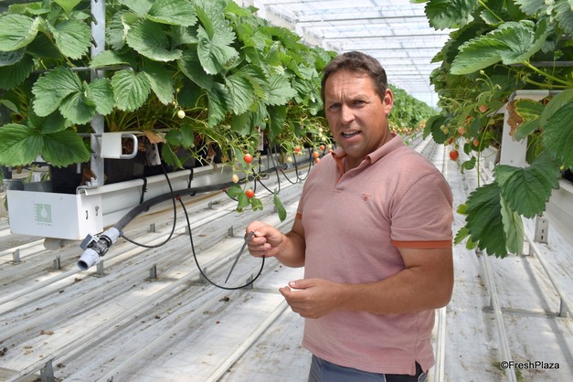 Ook aan voldoende beschikbaar gietwater is gedacht: "Al het dakoppervlak, zowel van de kassen als dat van de hallen, beschikt over dichte regenpijpen tot onder de watergoot. De twee regenwatertanks (20.000 m3 + 60.000 m3) zijn 1,5 meter dieper, zo wordt het water via natuurlijke hydrauliek in het waterreservoir 'gedrukt'", zegt Fritz afsluitend.