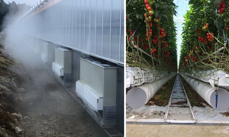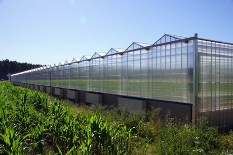 "De afdekking van de kas bestaat uit ESG-veiligheidsglas met 'Haze 50%'." Net als in de eerste fase wordt ook deze uitbreiding met het klimaatsturingssysteem Air & Energy van Ammerlaan Construction uitgerust, waarin warmtewisselaars in worden gezet voor het ontvochtigen van de kas zodat er bij gesloten ramen geteeld kan worden. Zo kan energie worden bespaard en een stabieler klimaat gerealiseerd worden."