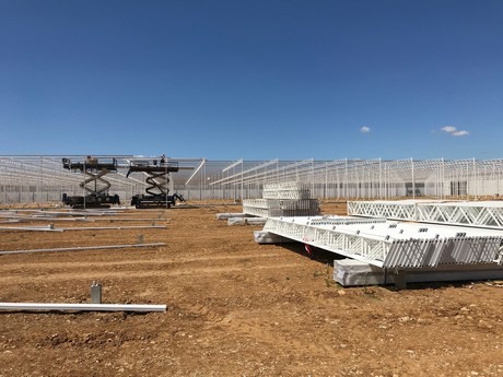 Foto's van de bouw van de eerste fase. De foto's zijn van kassenbouwer Gakon, die het project gerealiseerd heeft.