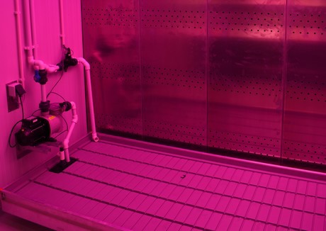 In totaal passen er drie extra brede ‘Deense’ karren in de ene helft van de container. Daarop kan op kleine schaal een meerlagenteeltsysteem gecreëerd worden met LED en alle toeters en bellen die daarbij komen kijken. Aan de andere kant is een kweektafel gemonteerd voor onderzoek naar ‘gewone’, niet-meerlagenteelt.