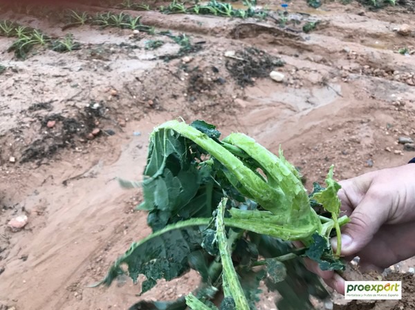 Campo de Cartagena is het gebied waar de tuinbouw het zwaarst is getroffen hoewel de regen voor sommige telers net van pas lijkt te komen. In San Javier, waar er meer dan 120 liter water per vierkante meter viel, heeft het ook flink gehageld.