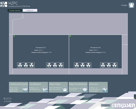 De condities in de ruimtes worden gerealiseerd door een op maat gemaakte koelinstallatie op basis van twee Bitzer compressoren en de hele installatie wordt geregeld via het Nijssen Control System. Het voordeel van een op maat ontworpen koelinstallatie is dat alle instellingen van regelkleppen, condensor en compressoren zichtbaar zijn in de regeling. Ook worden alle parameters, zoals diverse drukken en temperaturen, in het koelcircuit real time gemonitord. Dat maakt het makkelijker om diagnoses te stellen en om het rendement en de werking van de koelinstallatie op afstand te optimaliseren.