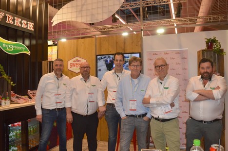 Het zachtfruitteam van The Greenery had ten tijde van deze foto de eerste beursdag er bijna opzitten. Op de foto: Rob van der Weele, Marin Robbertsen, Arno Renne, Klaas de Jager, Johan de Jongh en Sjraar Hulsman
