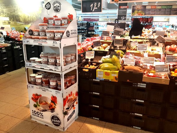 Obeikan heeft speciale displays ontwikkeld die al in Duitse supermarkten zijn geplaatst om de herkenbaarheid van de producten op de verkooppunten te verhogen. De displays verbeteren de zichtbaarheid en zullen de afzet bevorderen dankzij hun in het oog springende en kleurrijke ontwerp, zo is Obeikan overtuigd.