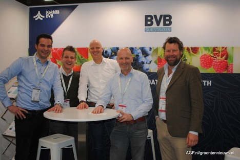 Erwin Dekkers, Bart Verheijen, Ren van Grieken, Jan Simons en Eric Boot van BVB. Zij zijn sinds dit jaar gefuseerd met het Finse substraatbedrijf Kekkilä en gaan nu verder onder de naam Kekkilä-BVB. Mede-organisator van de beurs is het bedrijf daardoor dit jaar niet meer en dus werd er door ZLTO en Delphy, de andere organisatoren, stilgestaan bij de jarenlange trouwe dienst van BVB.