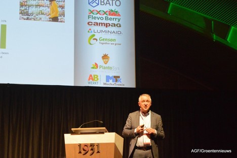 Sjaak van der Tak kreeg het woord nadat Gerard van den Brand als voorzitter van de Landelijke Commissie Aardbei de kans had gekregen terug te blikken op een jaar met in aardbei in de vollegrond veel 'downs' en onder glas ook wat 'ups'.